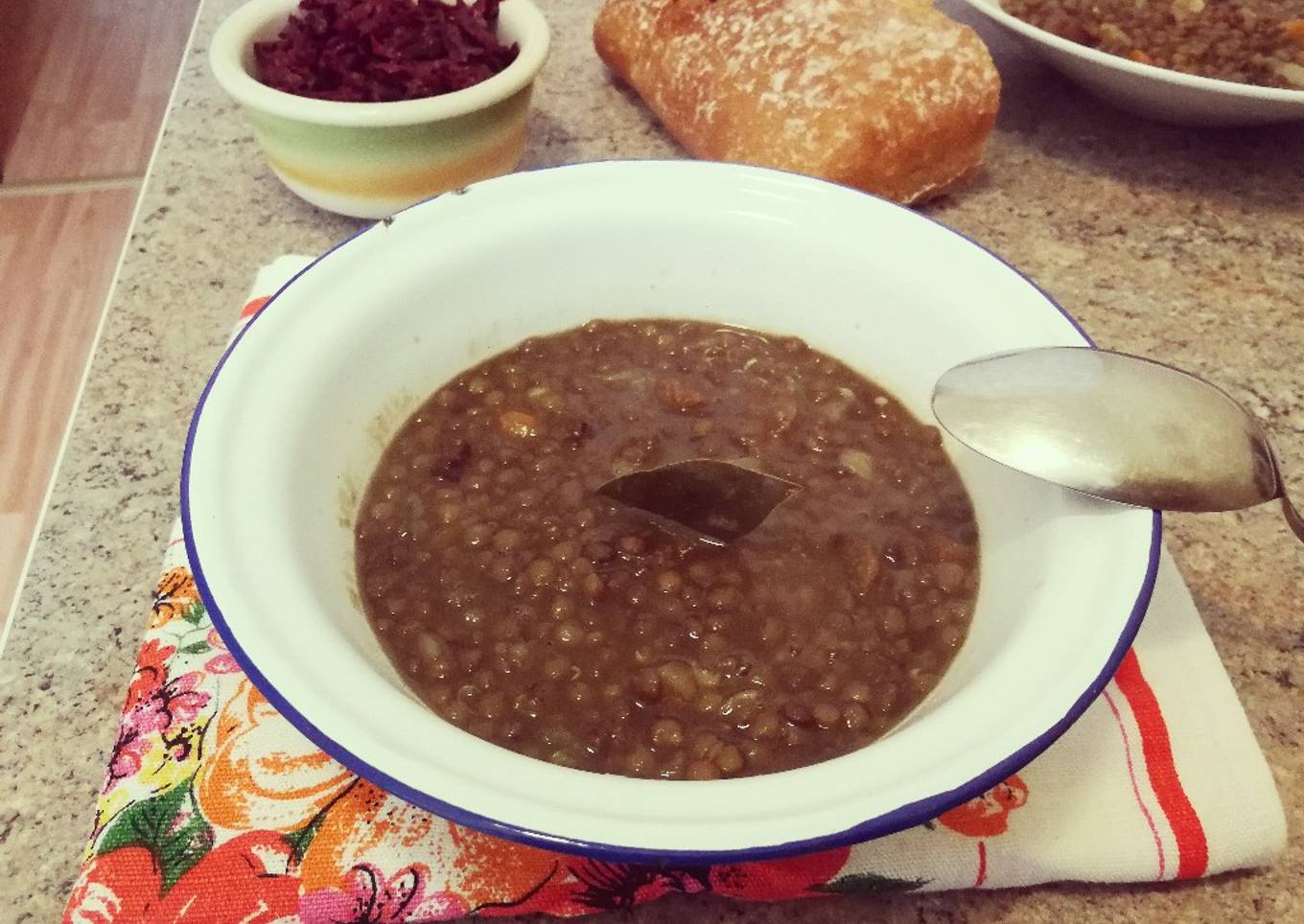 - Apartar la olla del fuego cuando esté lista y repartir las lentejas en boles individuales. He acompañado las lentejas con una ensalada de remolacha especiada.