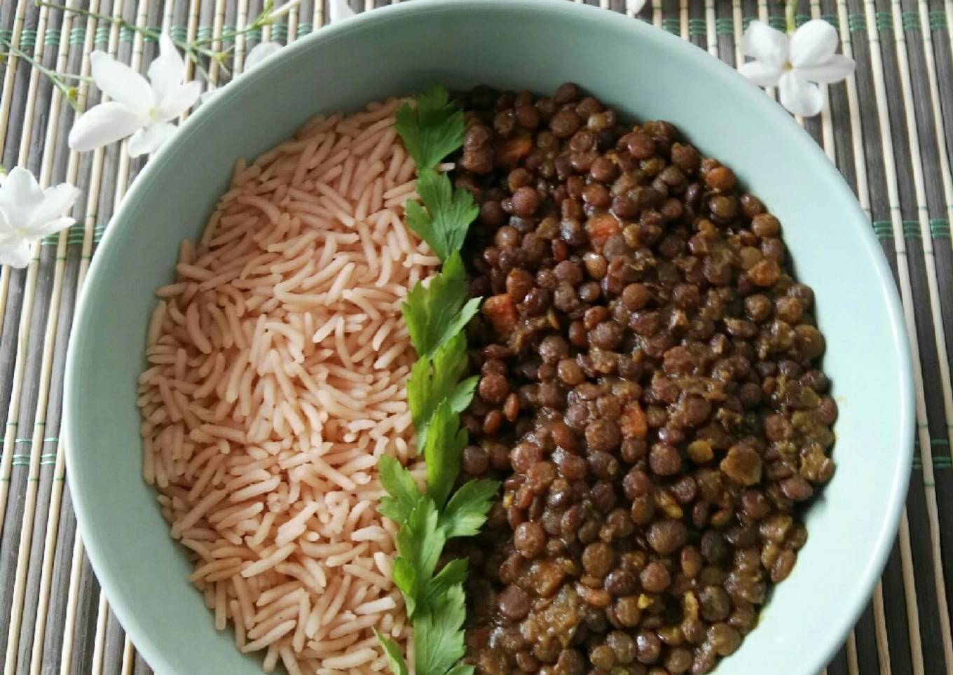 - Emplatamos poniendo en un bol las lentejas y el arroz