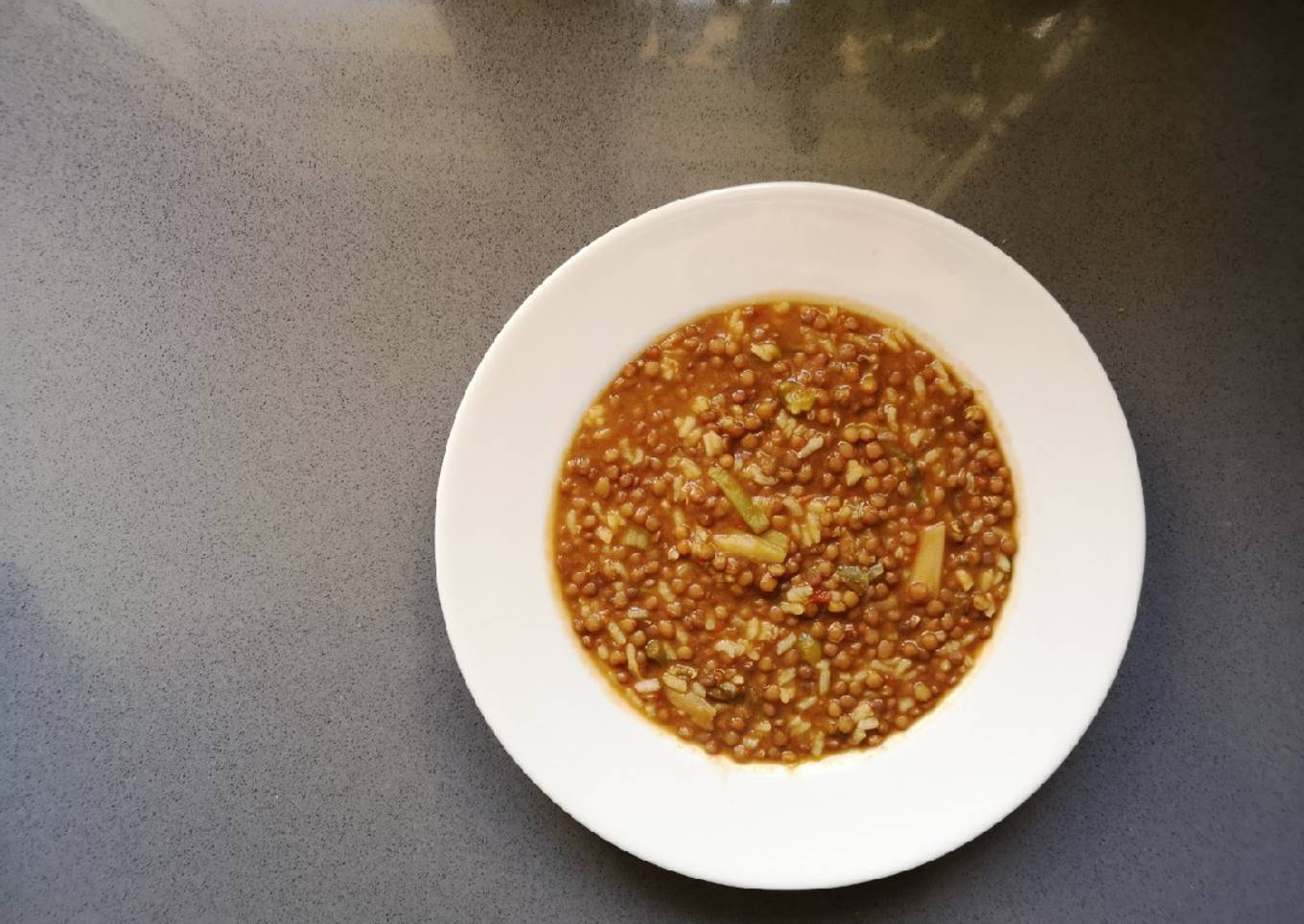 - Cuando las lentejas estén listas, agregamos el arroz y ponemos la multicooker en programa risotto y listo, a disfrutar!