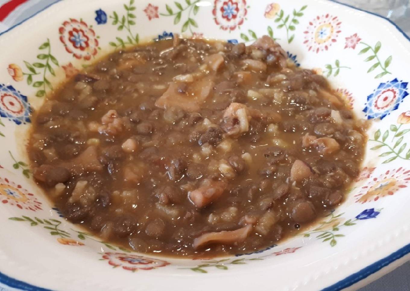 Hey everyone, I hope you are having an amazing day today. Today, we're going to make a distinctive dish, Lentejas estofadas, con calamares. It is one of my favorites food recipes. For mine, I am going to make it a little bit unique. This will be really delicious.