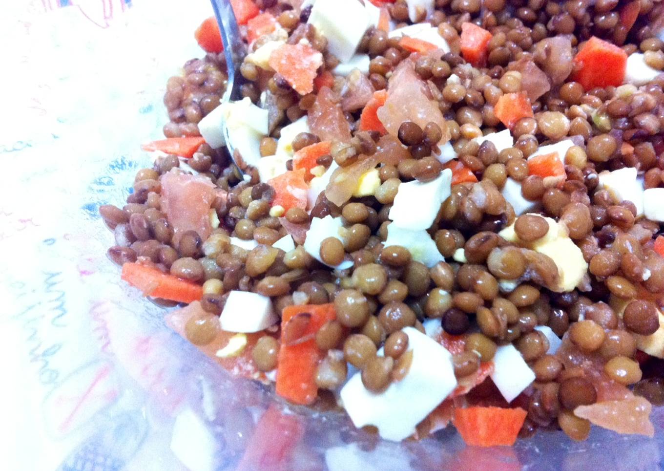 Ingredients and spices that need to be Make ready to make Ensalada de lentejas fría fácil: