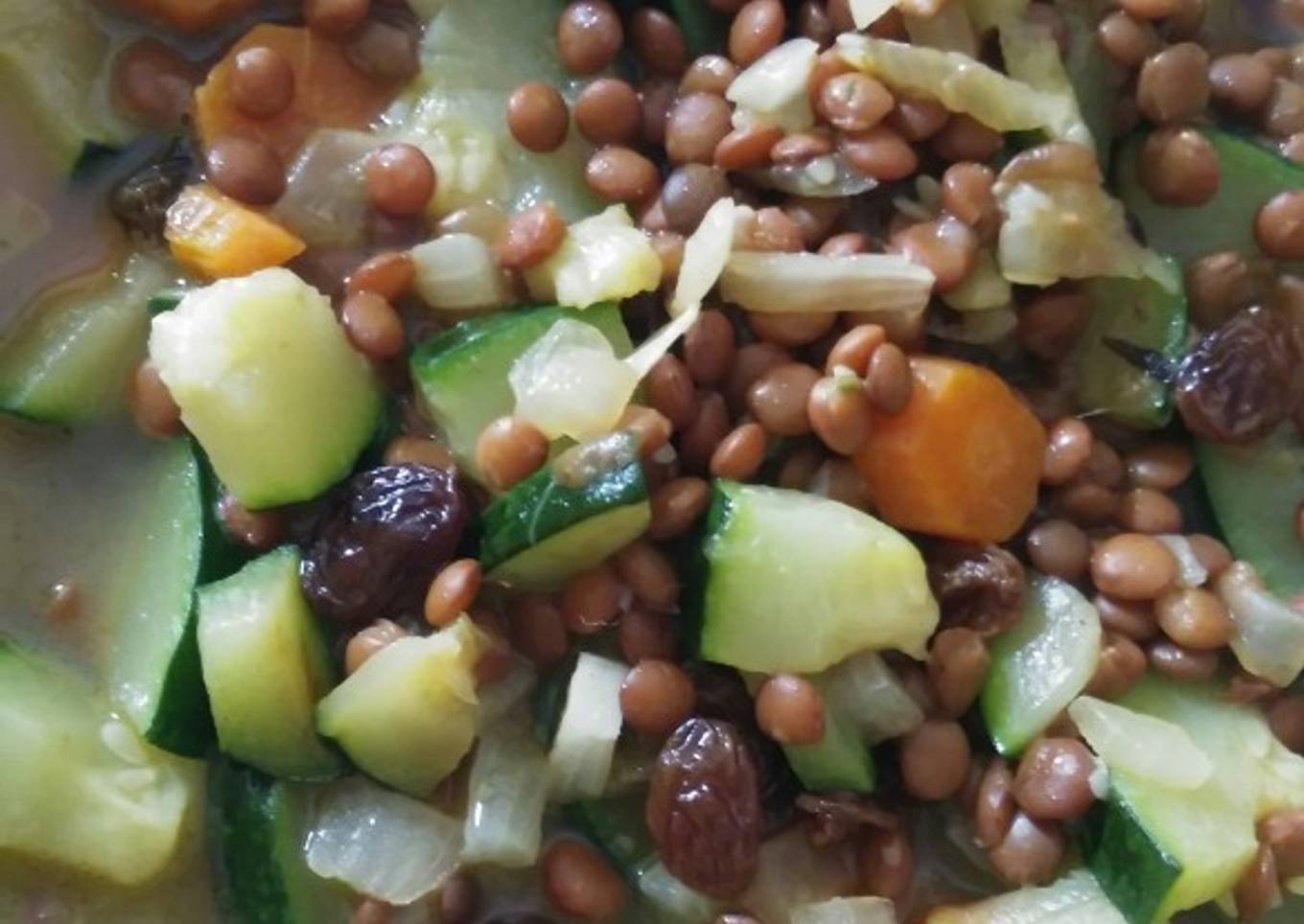Lentejas con verduras y pasas