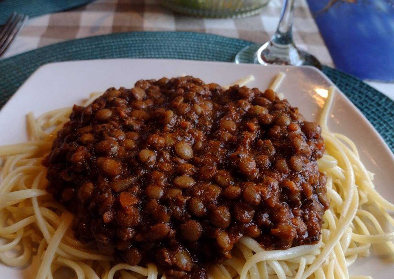 Boloñesa de lentejas y tallarines