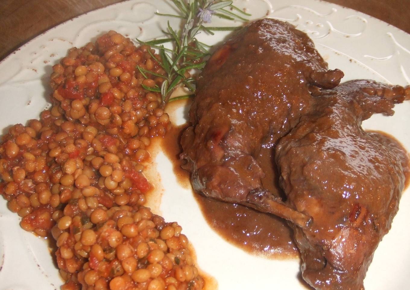 - Servir la liebre con su salsa y con las lentejas bien calientes.