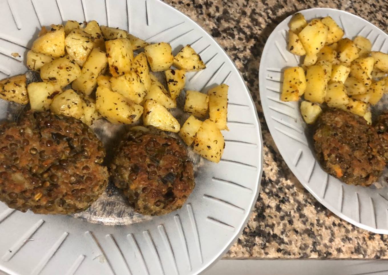 Steps to make to make Hamburguesa de Lentejas con papas al horno