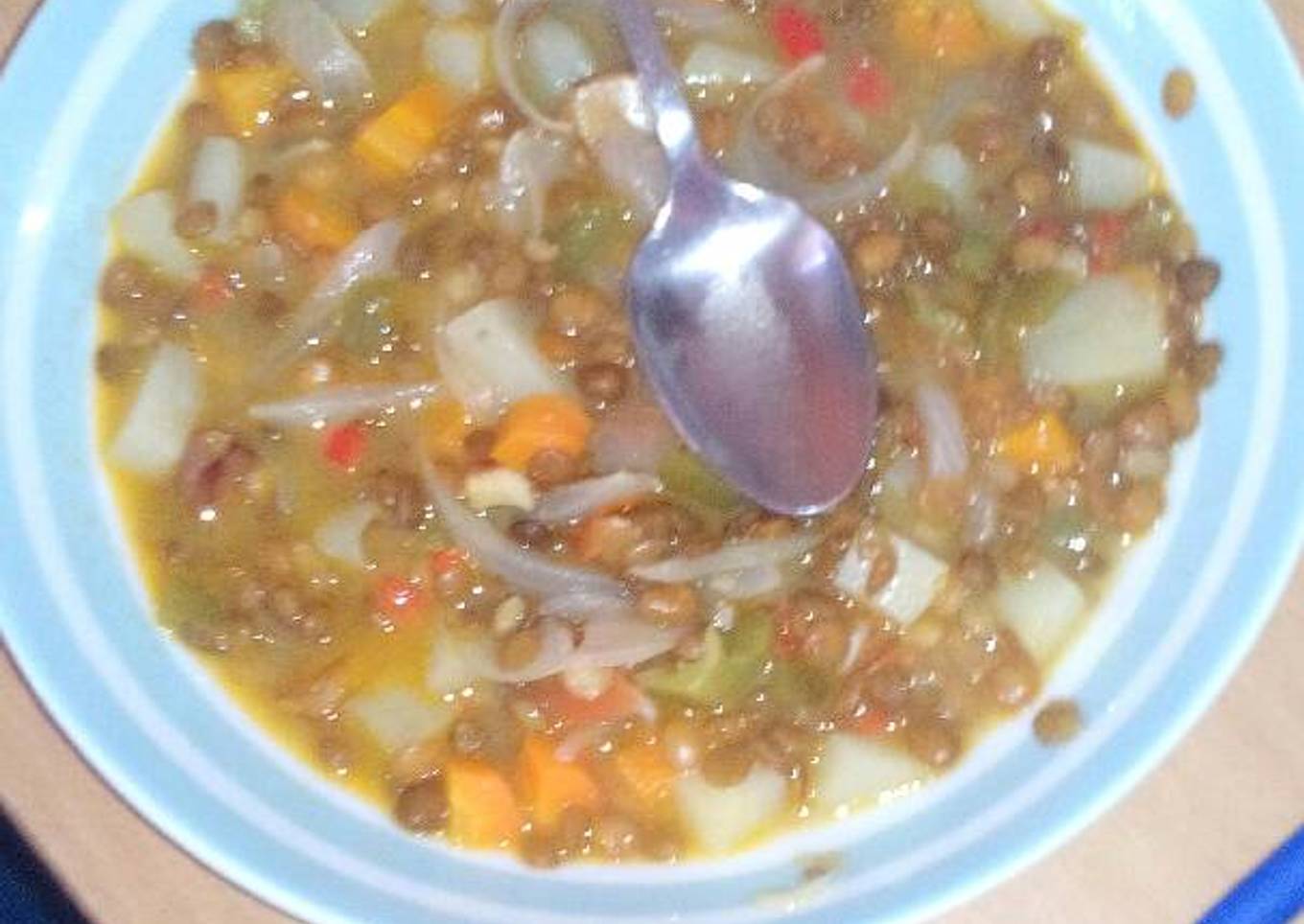 Hello everybody, I hope you are having an amazing day today. Today, I will show you a way to prepare a distinctive dish, Lentejas de bote con verdura. One of my favorites. This time, I will make it a little bit tasty. This is gonna smell and look delicious.