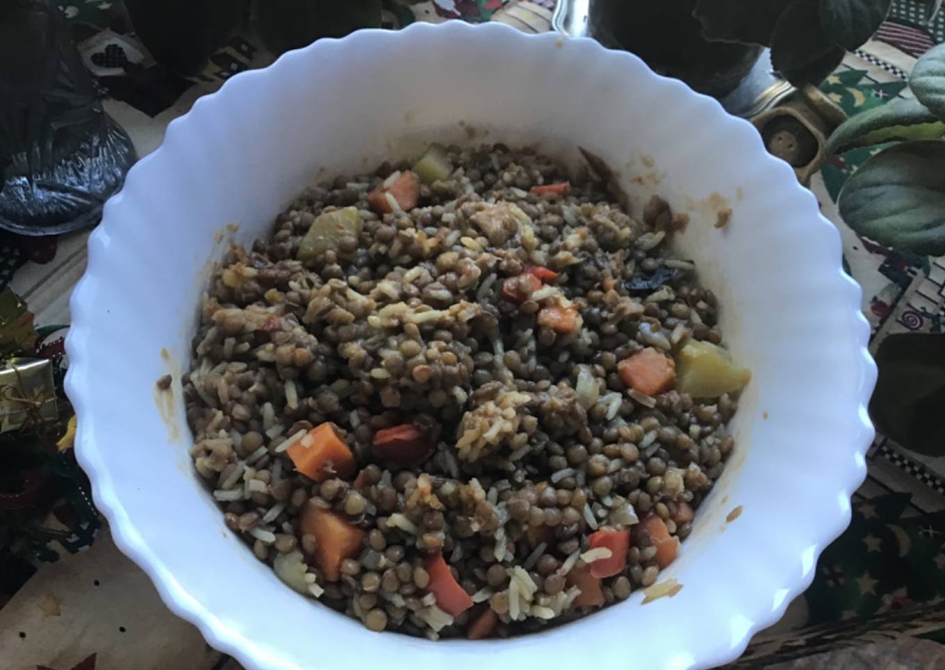 Lentejas estofadas con arroz