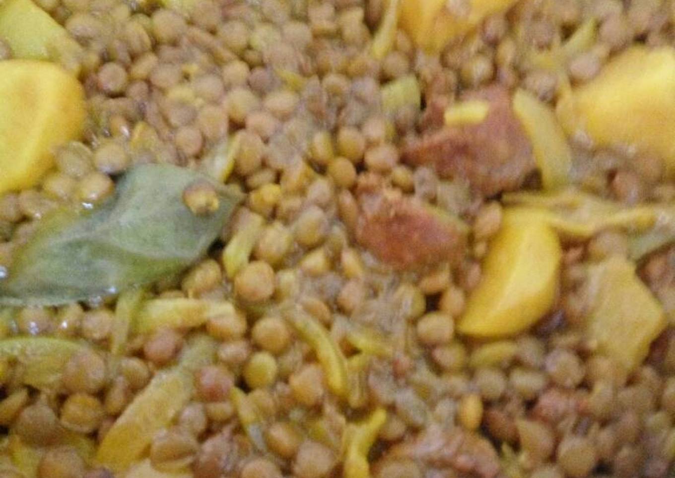 - Primero limpiamos las lentejas con agua y ponemos en una olla a fuego lento con un poco más de la mitad de la olla con agua