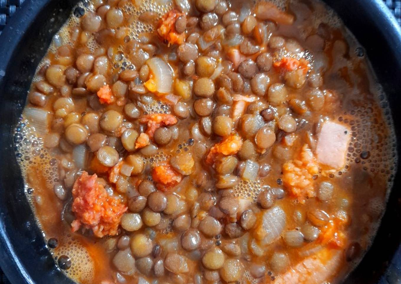 - Agregar todo el caldo a la olla. Dejar cocinar hasta que las lentejas estén totalmente cocidas / tiernas.