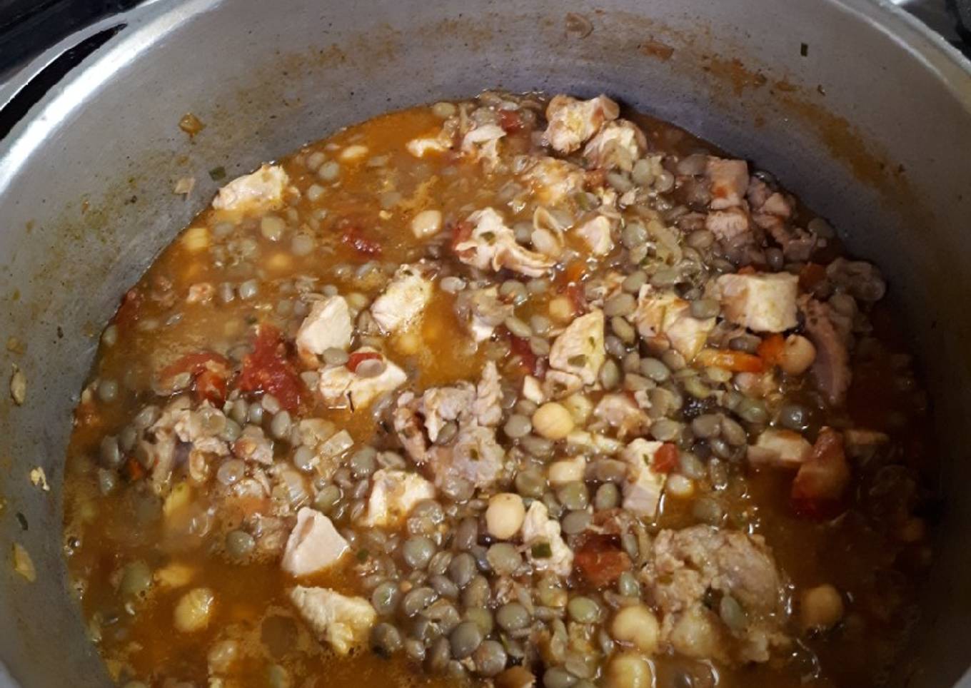 - Poner la taza de lentejas y los garbanzos cocinar 5 minutos más y pagar el fuego.y listo !!