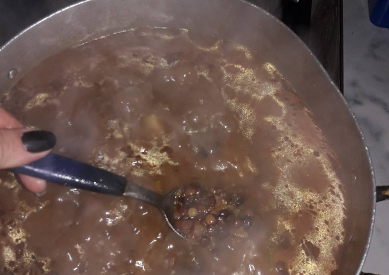 - Colocar las lentejas con su jugo y colocar 500 cc de agua