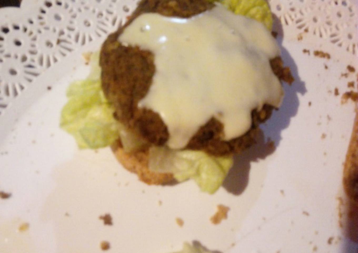 - Una vez la pasta este lista formar las hamburguesas a tu gusto el tamaño que quieras, lo ponemos en una placa aceitada para llevar al horno hasta que dore...agregamos queso fresco al momento de emplatar darle un golpe más de horno para que derrita el queso.