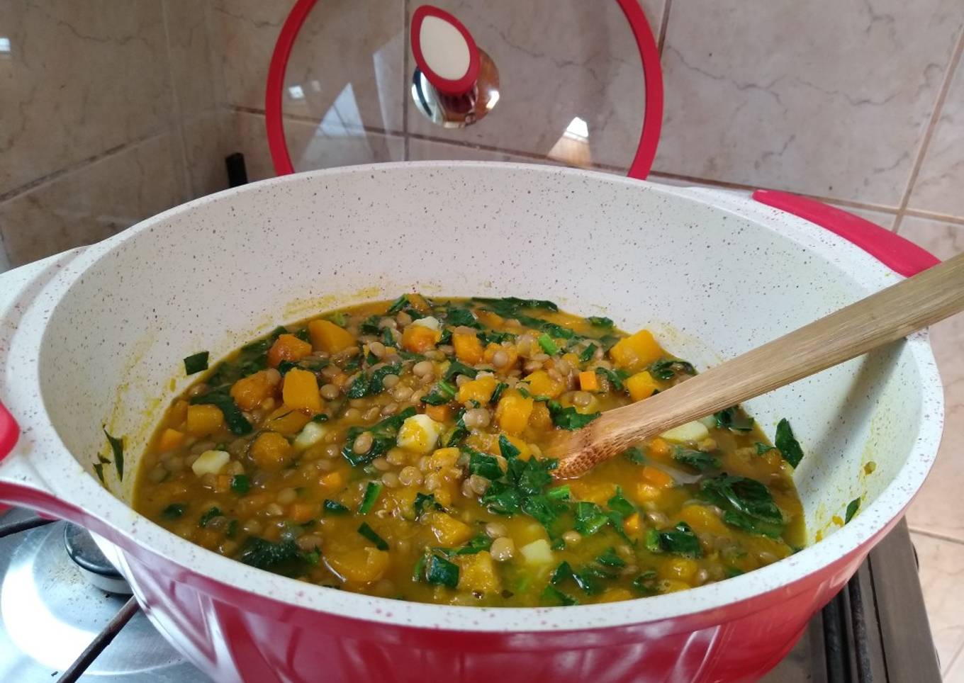 - Una vez que las papas y el zapallo estén cocidos agregar las lentejas a la preparación, cocinar unos minutos más y dejar reposar unos 5 minutos. Luego de estar apagada la olla le agrego la espinaca y el cilantro para que no recocerlas, ni perder el sabor ni color 😉✨ listo el almuerzo!