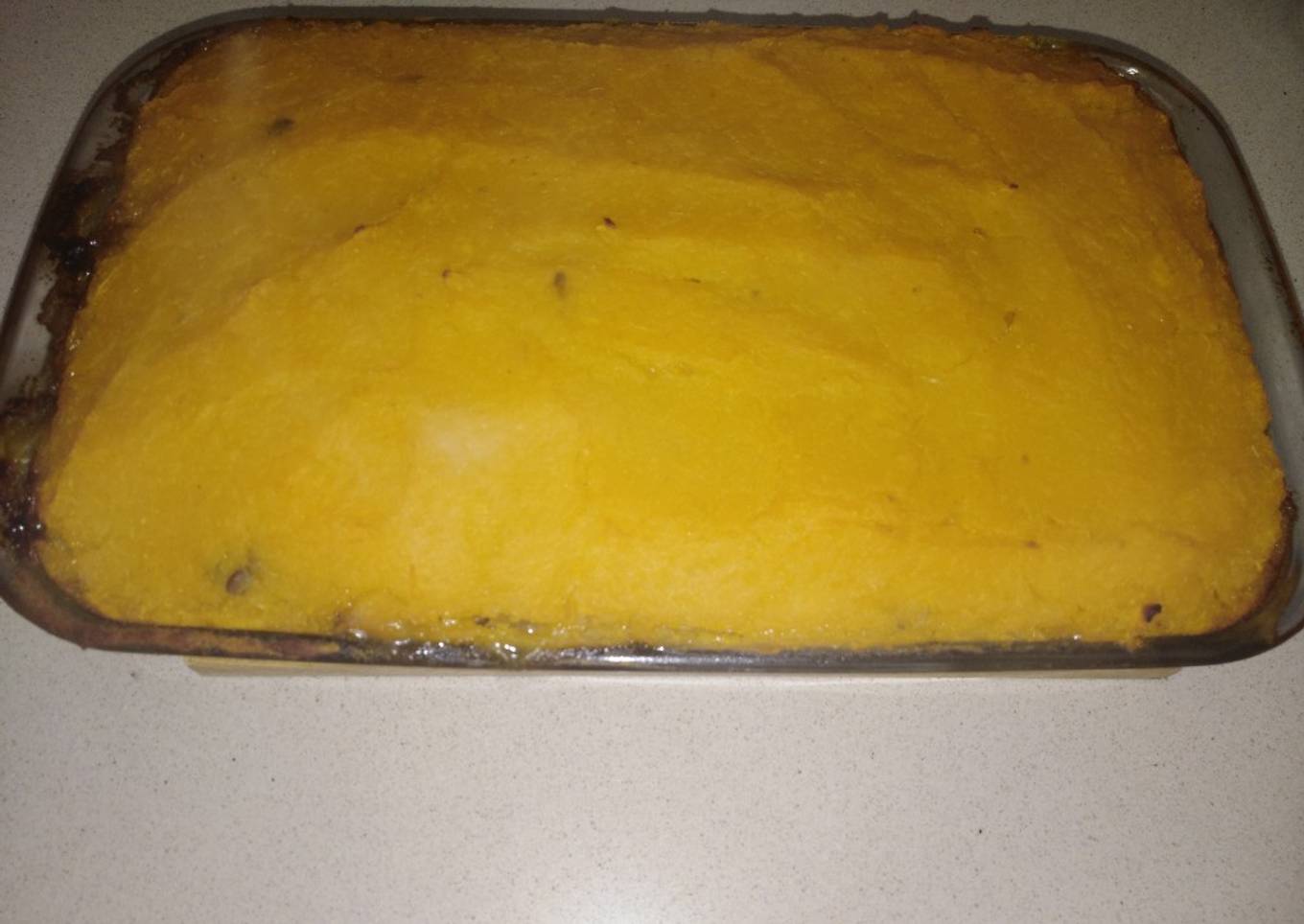- Por último armar nuestro pastel en una fuente para horno agregar una capa de puré y luego las lentejas y por último tapar con puré y llevar a horno 220 grados por 35 minutos y listo