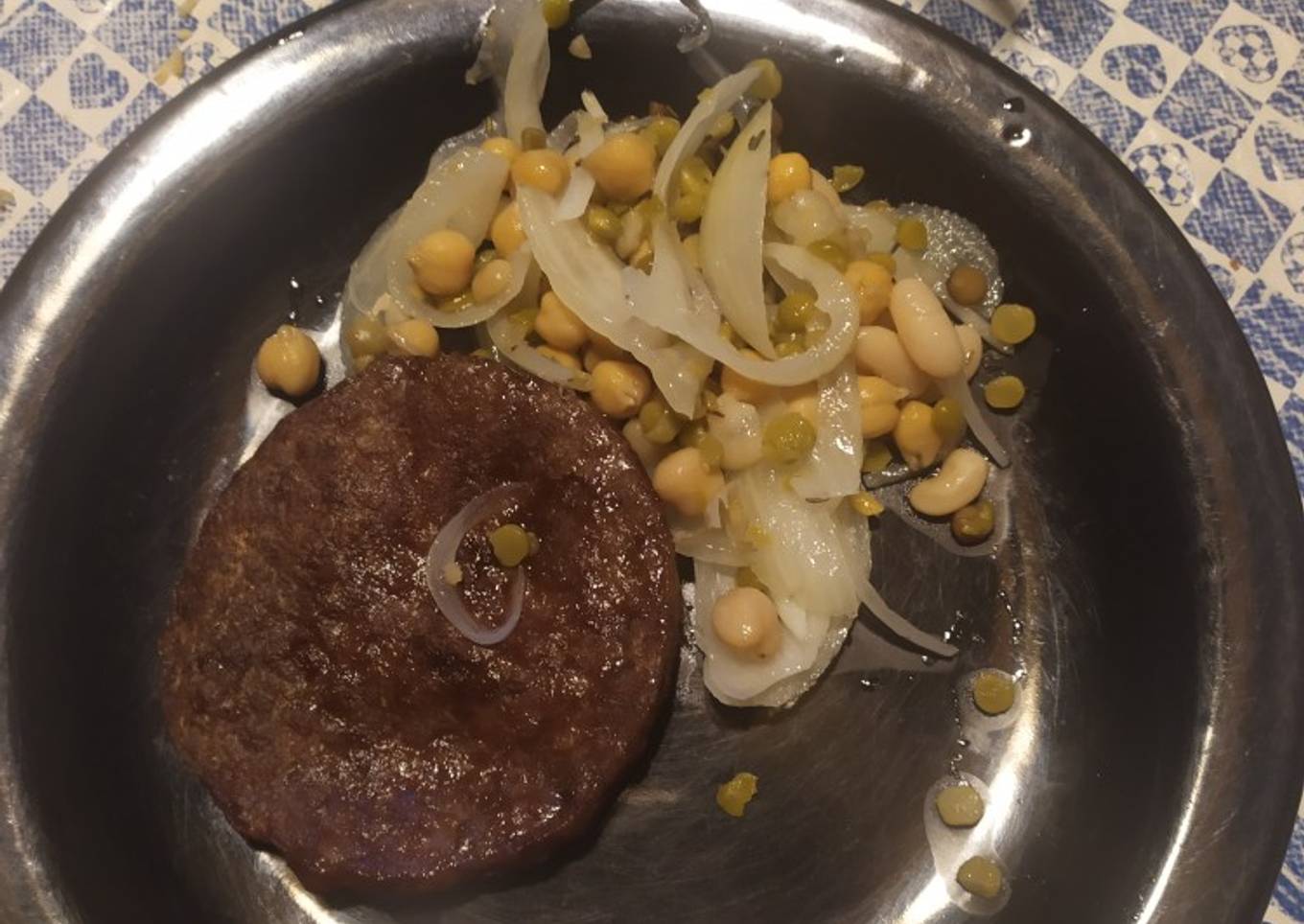 Guarnici贸n de ensalada cebolla, garbanzos, porotos y lentejas馃構