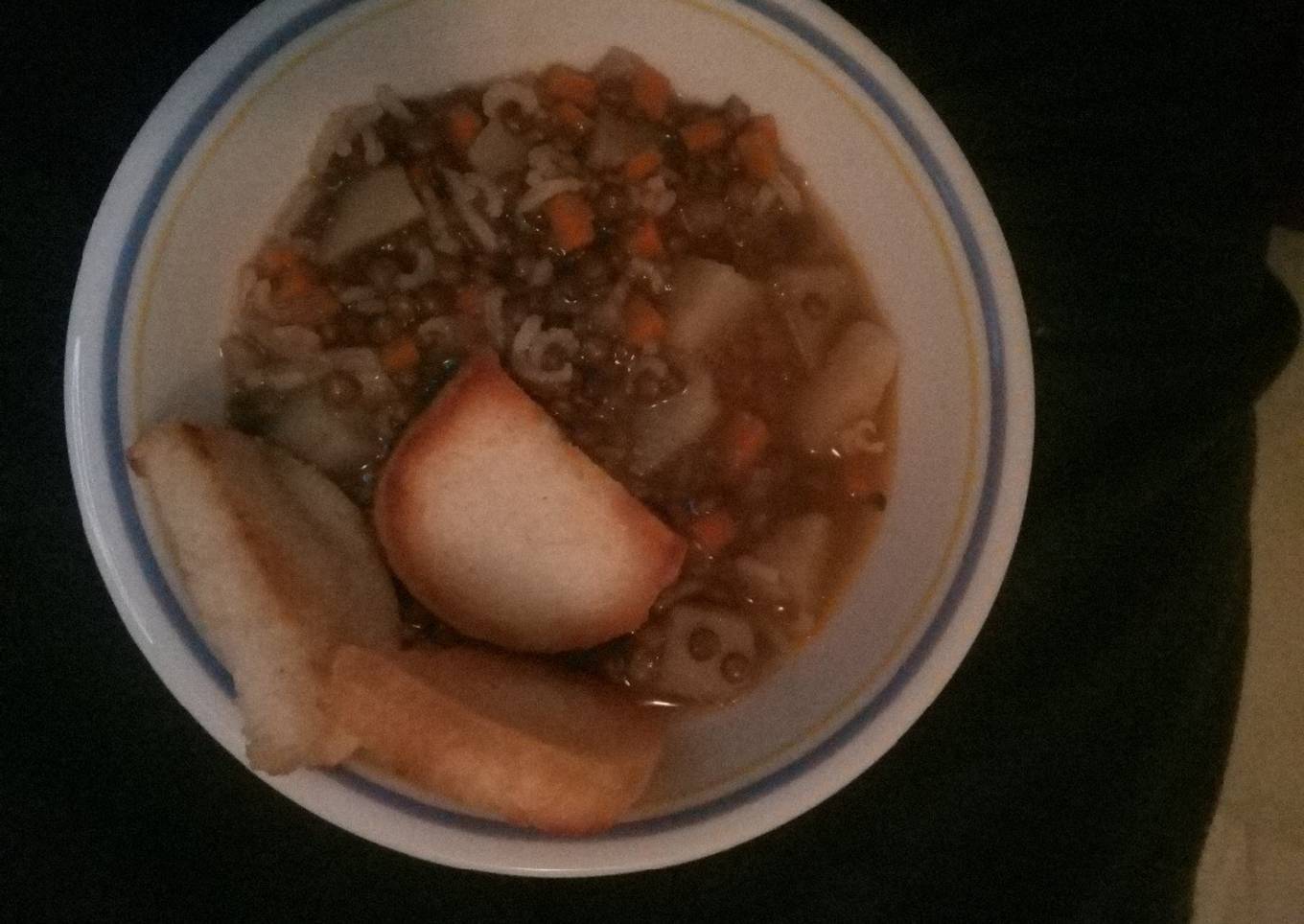 - Las lentejas las acompañe con pan frito solo con unas gotas de aceite, así aprovechando el pan que no comieron y no botarlo. Otra opción de como me encanta comerlo es con tomate y cebolla en cubo, echarle un poco encima de las lentejas, le da un toque muy fresco*****